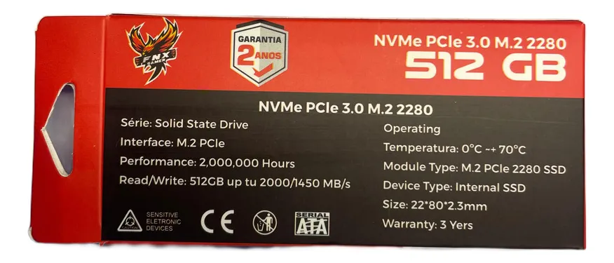 Com uma MTBF (Mean Time Between Failures) de 2.000.000 horas, o NVME FNX Gamer oferece uma durabilidade excepcional. Além disso, suporta uma faixa de temperatura de -0° a 70°C, assegurando um desempenho consistente em diversas condições.